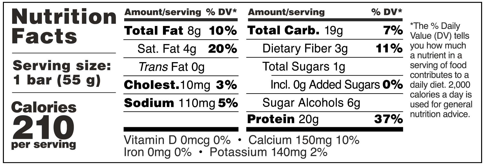 INGREDIENTS: MILK PROTEIN BLEND (CALCIUM CASEINATE, WHEY PROTEIN ISOLATE, WHEY PROTEIN CONCENTRATE), GLYCERIN, MALTITOL, BOVINE COLLAGEN HYDROLYSATE, COCOA BUTTER, POLYDEXTROSE, DRY WHOLE MILK, SOY PROTEIN ISOLATE, WATER, SUNFLOWER OIL, CONTAINS LESS THAN 2% OF EACH OF THE FOLLOWING: ARTIFICIAL AND NATURAL FLAVORS, SALT, CITRIC ACID, VEGETABLE JUICE (COLOR), SUNFLOWER LECITHIN, SUCRALOSE.